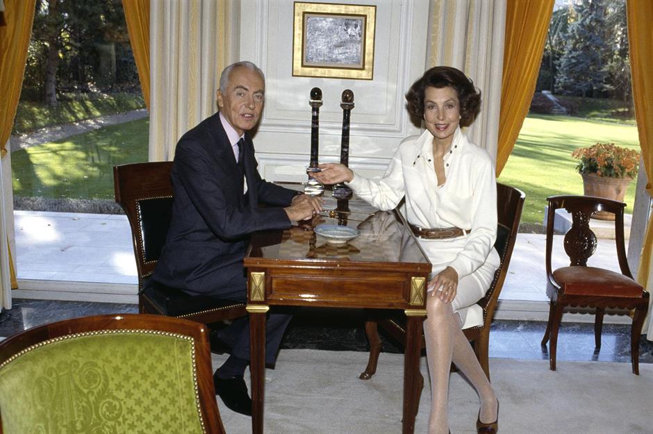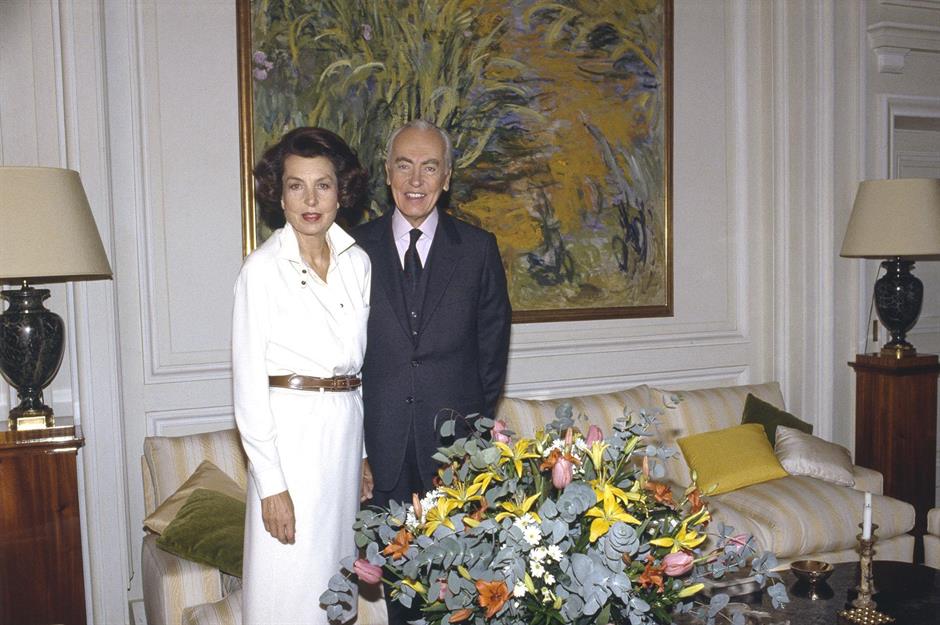 Françoise creció rodeada de un lujo extraordinario. Los amantes del arte más observadores reconocerán, colgado tras Liliane y su marido André en esta foto tomada en su salón en 1988, El sendero entre los lirios de Monet.