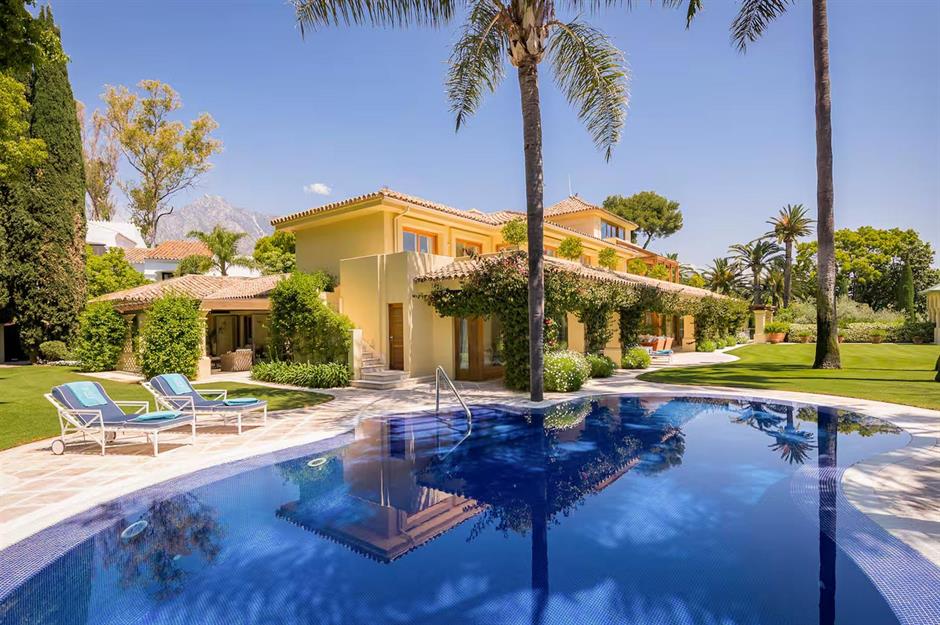 Dieses traumhafte Anwesen im südspanischen Marbella ist ein wahres Mittelmeerparadies – hier gibt es alles, was man zum Entspannen braucht. Die Villa mit neun Schlafzimmern bietet zwei wunderschöne Pools. Auf der Terrasse, dem Rasen und der Veranda können Mieter nach Herzenslust die spanische Sonne genießen.