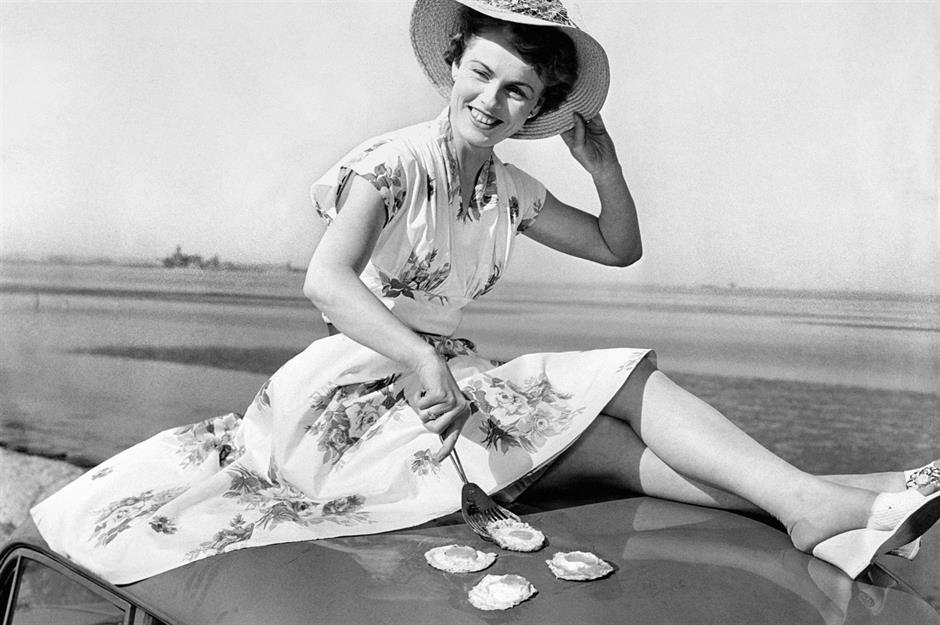 The refrigerator, which entered the basket in 1962, had been invented 49 years earlier in the USA. Yet in 1948, just 2% of households in the UK had one. By 1959, the figure was still just 13%. But that year, a glorious summer – model Sheila McDonough (pictured) was able to fry eggs on her car – made the case for a fridge obvious. Just a few years later, the refrigerator was in the basket.